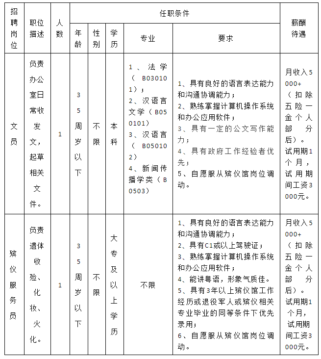 5.熱愛殯葬事業(yè),具有正常履行職責的身體條件、心理素質(zhì)和符合職位要求的工作能力;