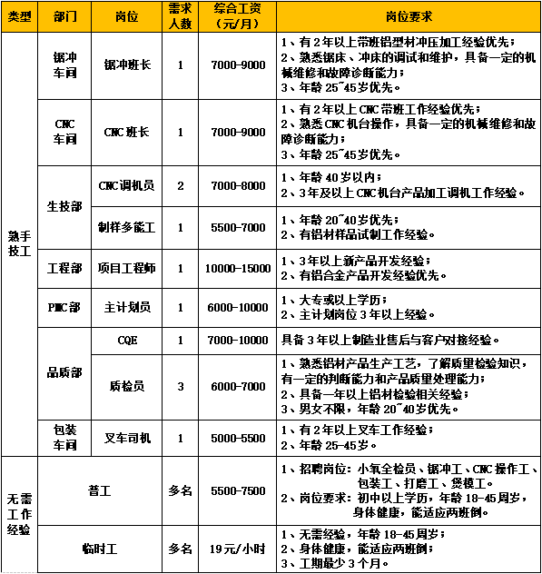 因生產(chǎn)發(fā)展需要,誠(chéng)聘以下崗位