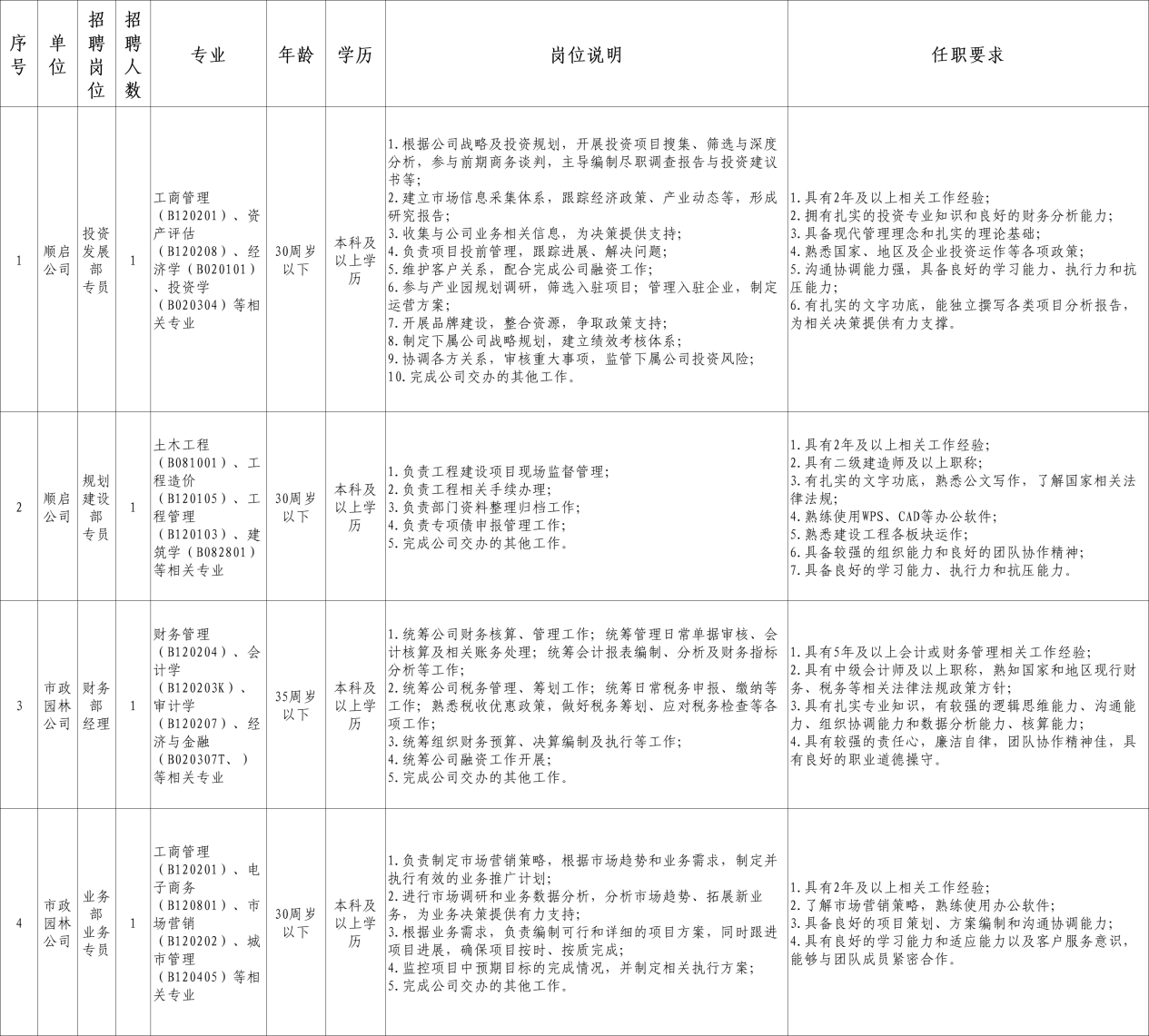 清遠市清城區(qū)順啟投資有限公司招聘公告