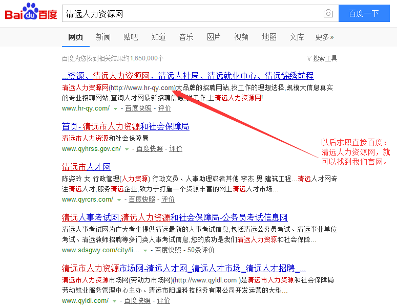 恭喜“清遠人力資源網(wǎng)”m.gzdabai.com榮登百度搜索清遠地 區(qū)首位。清遠人力資源網(wǎng)是由清遠市人力資源市場指導、清遠市錦繡 前程人力資源有限公司運營的官方求職招聘平臺。從3月份正式推 廣到現(xiàn)在,本網(wǎng)站已經(jīng)吸引了眾多企業(yè)與求職者注冊。